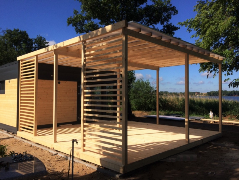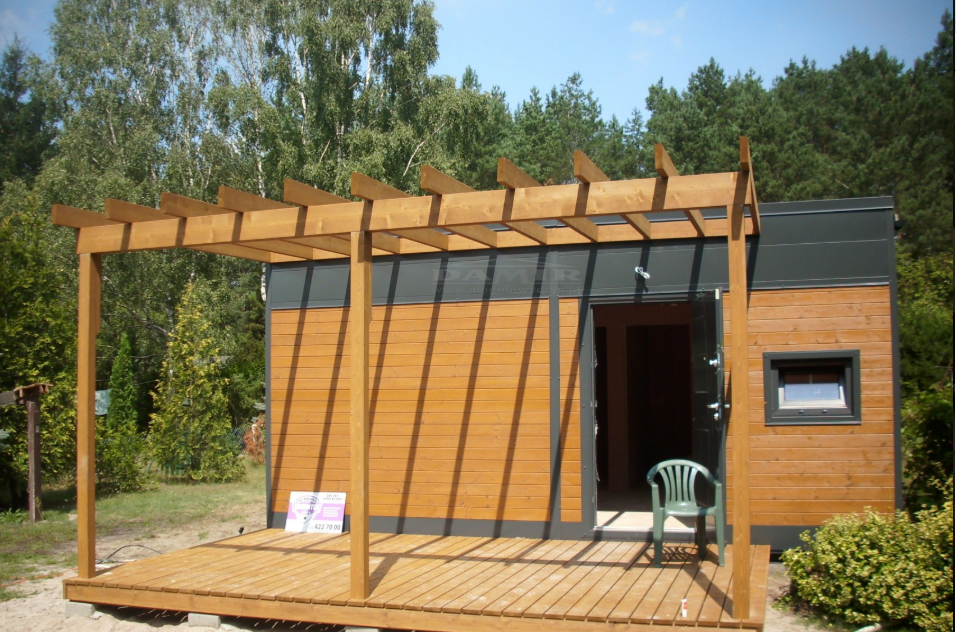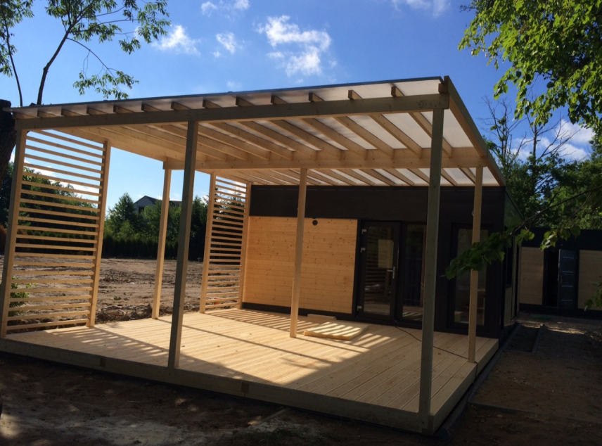 A warm space consisting of 2 metropol containers of 3 m x 7 m dimensions. A modern look with a wooden siding on steel construction. This modern container house of 42 m² offers you a living room with a kitchen, a bathroom and 1 or 2 more rooms on request.